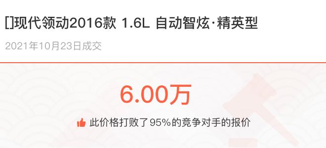 下面一起来看下开了不同公里数的现代领动在二手车拍卖平台上卖了多少钱: