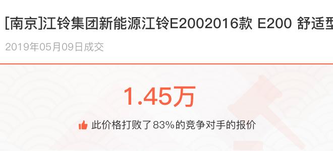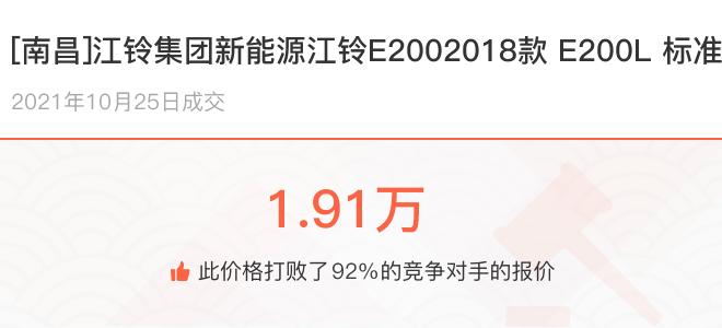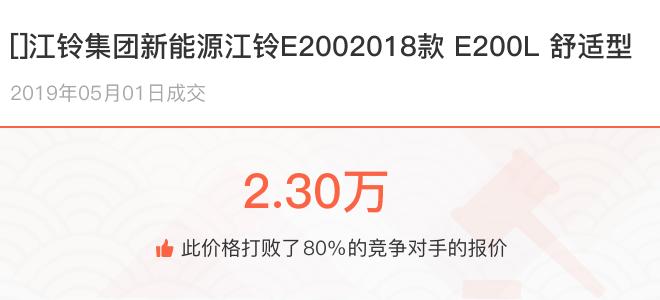 下面一起来看下开了不同公里数的江铃集团新能源江铃E200在二手车拍卖平台上卖了多少钱: