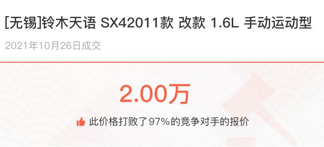 下面一起来看下开了不同公里数的铃木天语 SX4在二手车拍卖平台上卖了多少钱:
