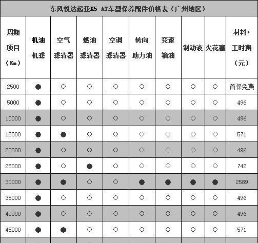 厂家与4S店保养计划不一致,厂家建议保养的间隔周期行驶7500公里或6个月(以先到为准),4S店保养的间隔周期行驶5000公里或3个月。空气滤清器每行驶1.5万公里更换一次、燃油滤清为每行驶2.5万公里更换一次。制动液与火花塞每行驶3万公里时更换一次。