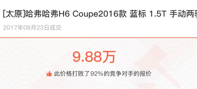 下面一起来看下开了不同公里数的哈弗哈弗H6 Coupe在二手车拍卖平台上卖了多少钱:
