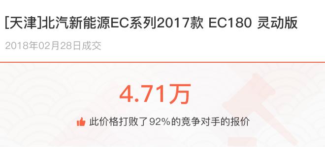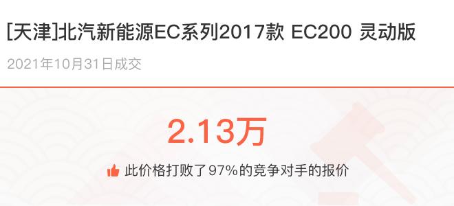 下面一起来看下开了不同公里数的北汽新能源EC系列在二手车拍卖平台上卖了多少钱: