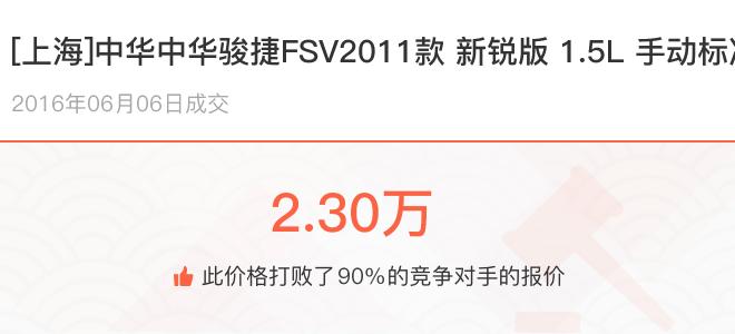 下面一起来看下开了不同公里数的中华中华骏捷FSV在二手车拍卖平台上卖了多少钱: