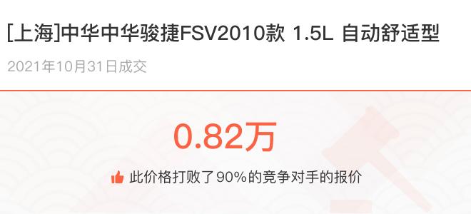 一辆开了10年7.3万公里的二手车还值多少钱?上海车主看到朋友换了辆新车,也想把自己的中华中华骏捷FSV卖掉换辆新的,却不知道这辆行驶了7.3万公里的旧车到底还能卖多少钱?下面一起来看下开了不同公里数的中华中华骏捷FSV在二手车拍卖平台上卖了多少钱: