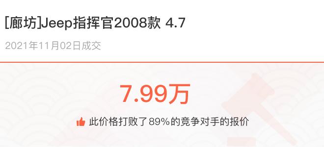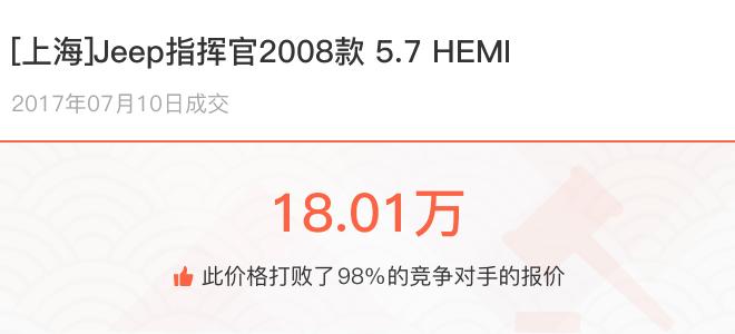 下面一起来看下开了不同公里数的Jeep指挥官在二手车拍卖平台上卖了多少钱: