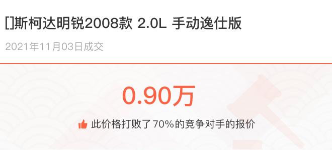 下面一起来看下开了不同公里数的斯柯达明锐在二手车拍卖平台上卖了多少钱: