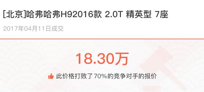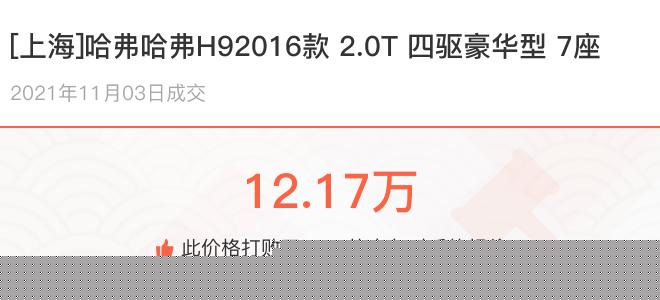 下面一起来看下开了不同公里数的哈弗哈弗H9在二手车拍卖平台上卖了多少钱: