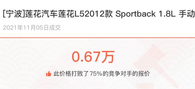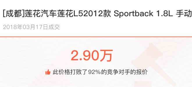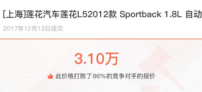 下面一起来看下开了不同公里数的莲花汽车莲花L5在二手车拍卖平台上卖了多少钱: