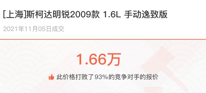 下面一起来看下开了不同公里数的斯柯达明锐在二手车拍卖平台上卖了多少钱: