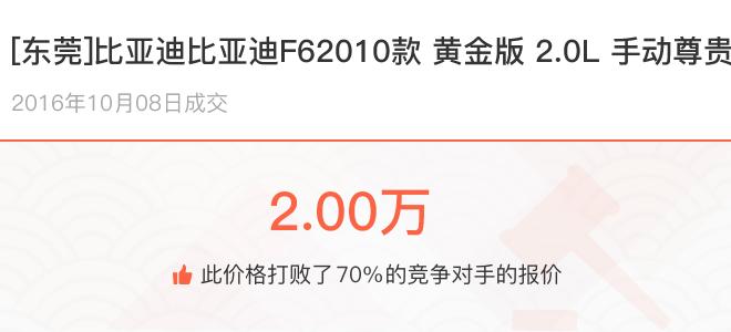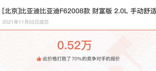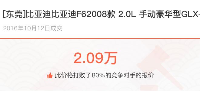 下面一起来看下开了不同公里数的比亚迪比亚迪F6在二手车拍卖平台上卖了多少钱: