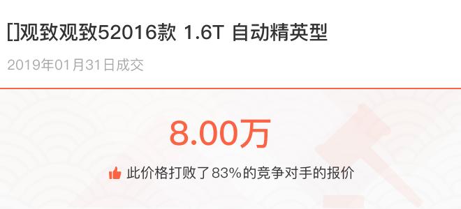 下面一起来看下开了不同公里数的观致观致5在二手车拍卖平台上卖了多少钱: