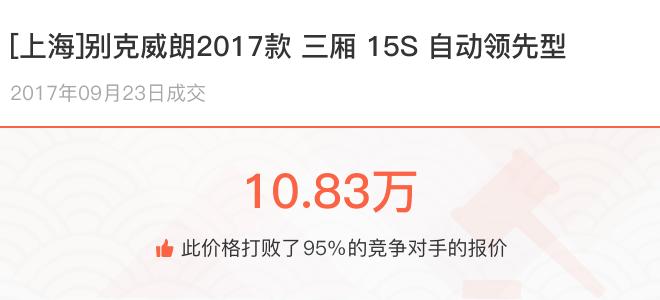 下面一起来看下开了不同公里数的别克威朗在二手车拍卖平台上卖了多少钱: