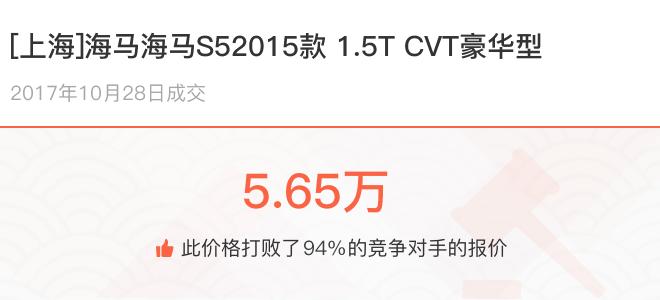 下面一起来看下开了不同公里数的海马海马S5在二手车拍卖平台上卖了多少钱: