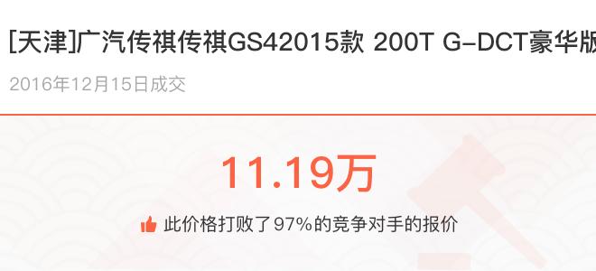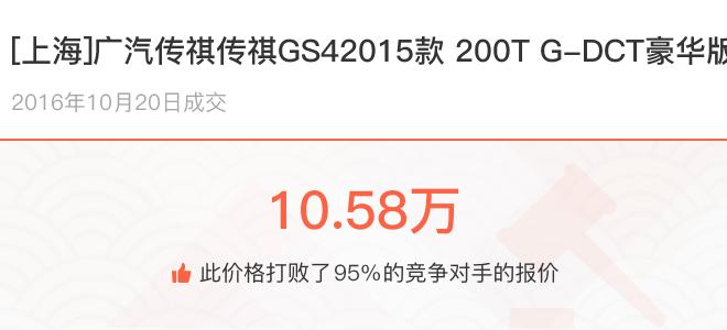 下面一起来看下开了不同公里数的广汽传祺传祺GS4在二手车拍卖平台上卖了多少钱: