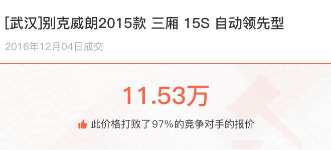 下面一起来看下开了不同公里数的别克威朗在二手车拍卖平台上卖了多少钱: