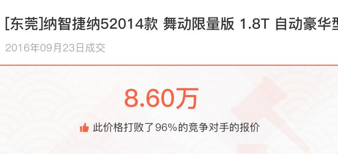 下面一起来看下开了不同公里数的纳智捷纳5在二手车拍卖平台上卖了多少钱: