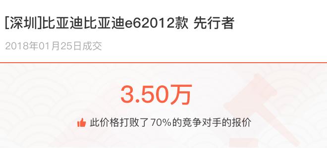 下面一起来看下开了不同公里数的比亚迪比亚迪e6在二手车拍卖平台上卖了多少钱: