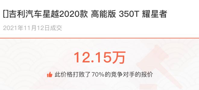 下面一起来看下开了不同公里数的吉利汽车星越在二手车拍卖平台上卖了多少钱: