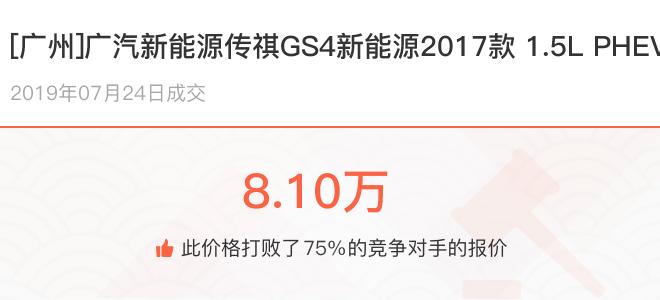 下面一起来看下开了不同公里数的广汽传祺传祺GS4新能源在二手车拍卖平台上卖了多少钱:
