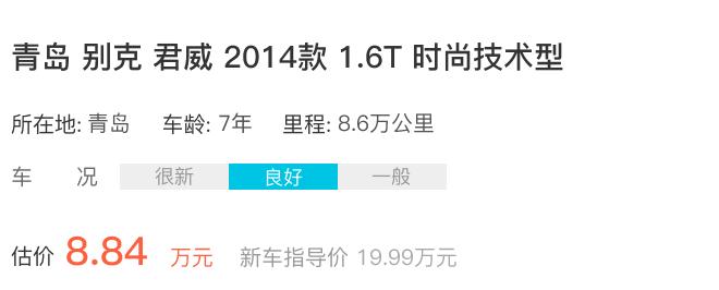 该款车2014年上牌启用,行驶8.6万公里,新车指导价19.99万元,车况良好的情况下,成交价5.80万。