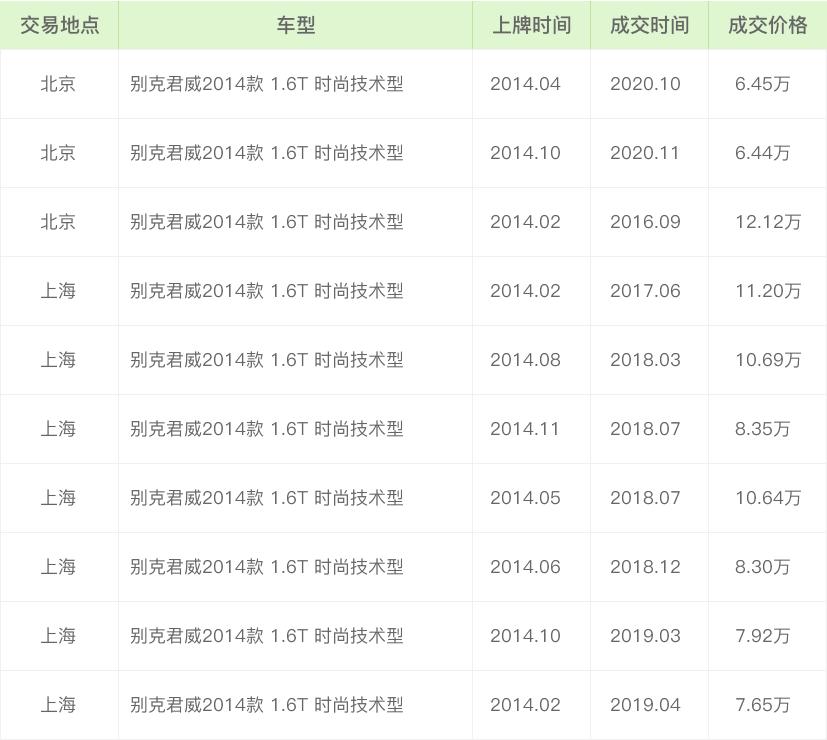 以上为这款车在各个地区二手车的成交价格,由此可见,影响二手车价格的因素很多,不能单从一两个因素去看。