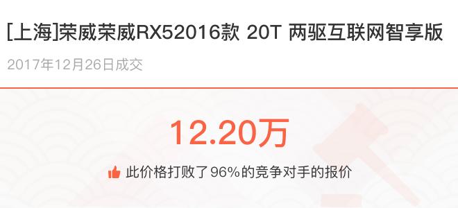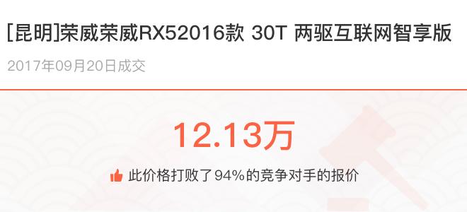 下面一起来看下开了不同公里数的荣威荣威RX5在二手车拍卖平台上卖了多少钱: