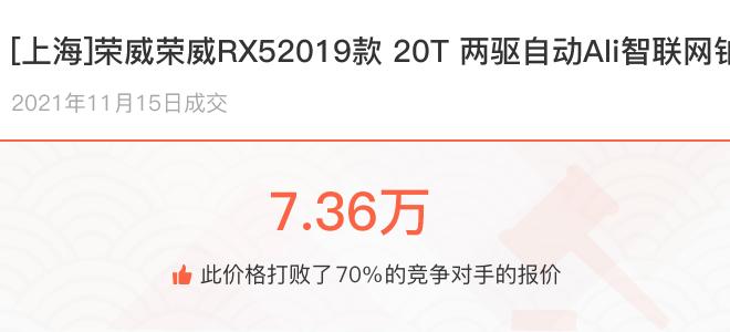 一辆开了2年1.1万公里的二手车还值多少钱?上海车主看到朋友换了辆新车,也想把自己的荣威荣威RX5卖掉换辆新的,却不知道这辆行驶了1.1万公里的旧车到底还能卖多少钱?下面一起来看下开了不同公里数的荣威荣威RX5在二手车拍卖平台上卖了多少钱: