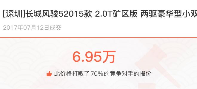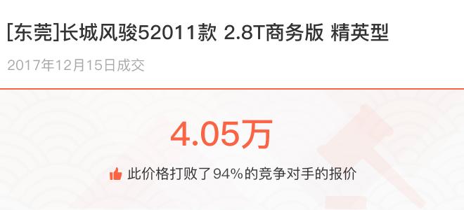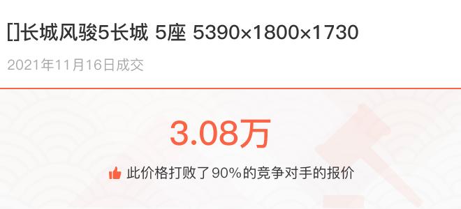 下面一起来看下开了不同公里数的长城风骏5在二手车拍卖平台上卖了多少钱: