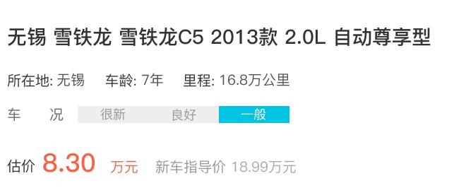 该款车2014年上牌启用,行驶16.8万公里,新车指导价18.99万元,车况一般的情况下,成交价4.43万。
