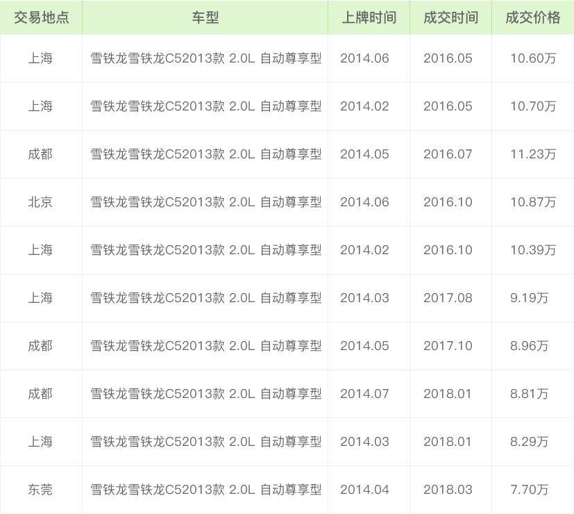 以上为这款车在各个地区二手车的成交价格,由此可见,影响二手车价格的因素很多,不能单从一两个因素去看。
