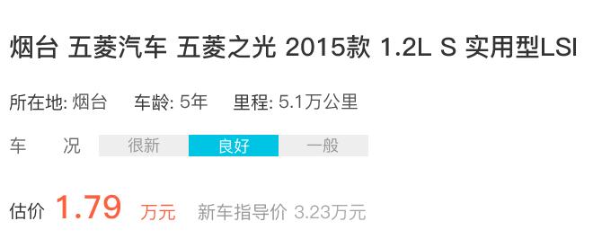 该款车2016年上牌启用,行驶5.1万公里,新车指导价3.23万元,车况良好的情况下,成交价1.68万。