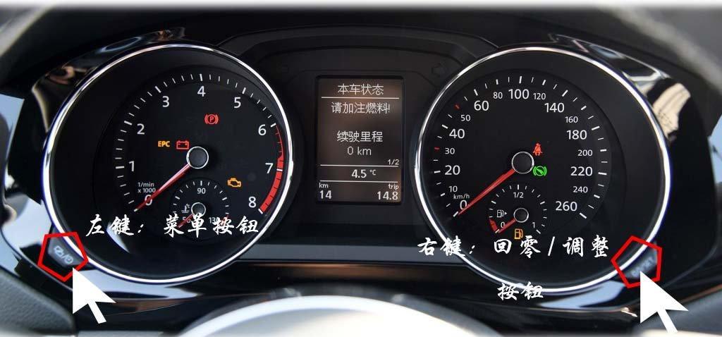 2. 按住仪表盘上的右键(回零/调整)按钮,按钮位置上图所示。