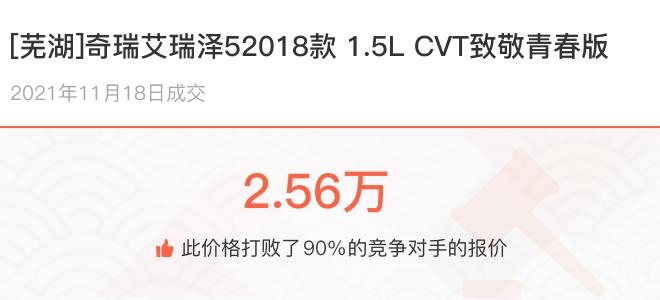 下面一起来看下开了不同公里数的奇瑞艾瑞泽5在二手车拍卖平台上卖了多少钱: