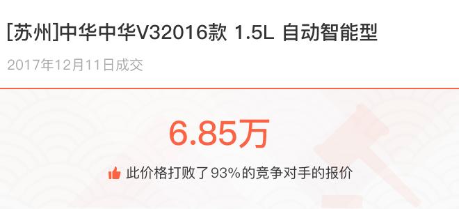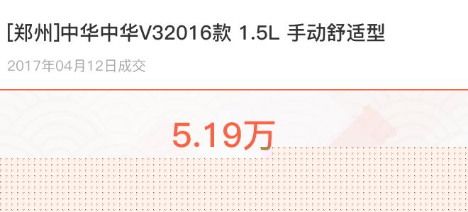 下面一起来看下开了不同公里数的中华中华V3在二手车拍卖平台上卖了多少钱: