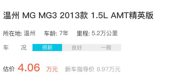 近几年,随着国民收入的不断增长,越来越多的家庭选择汽车作为代步工具,也因此中国汽车的保有量增长突飞猛进,庞大的汽车数量催生了中国二手车市场的活跃发展。那么,一辆二手车进入市场流通前,要如今进行评估呢?今天,天天拍车就以MGMG3为例,给大家重点聊一聊。