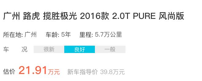 该款车2016年上牌启用,行驶5.7万公里,新车指导价39.8万元,车况良好的情况下,成交价14.74万。