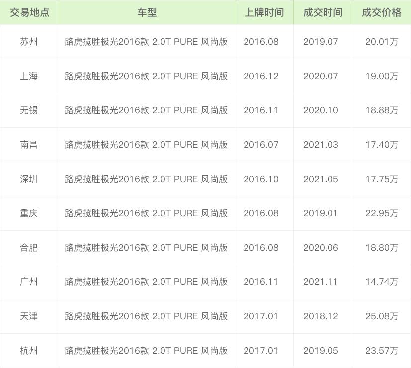 以上为这款车在各个地区二手车的成交价格,由此可见,影响二手车价格的因素很多,不能单从一两个因素去看。
