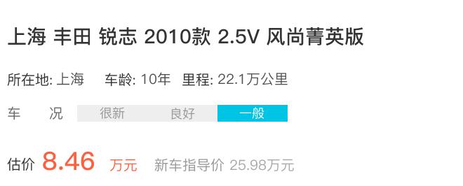 车型:丰田锐志2010款 2.5V 风尚菁英版