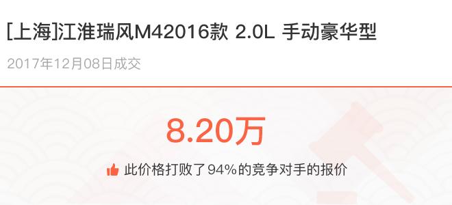 下面一起来看下开了不同公里数的江淮瑞风M4在二手车拍卖平台上卖了多少钱: