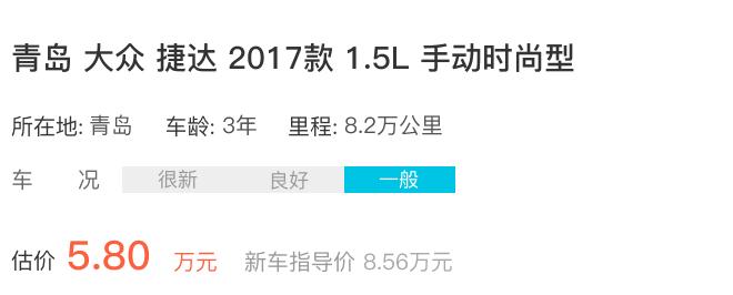 该款车2018年上牌启用,行驶8.2万公里,新车指导价8.56万元,车况一般的情况下,成交价4.00万。