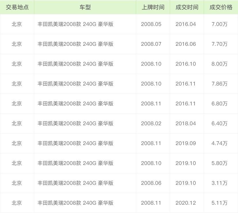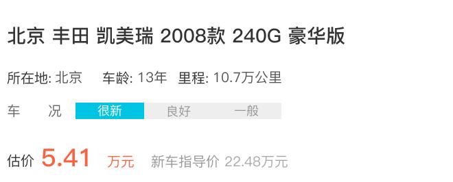 该款车2008年上牌启用,行驶10.7万公里,新车指导价22.48万元,车况很新的情况下,成交价5.08万。