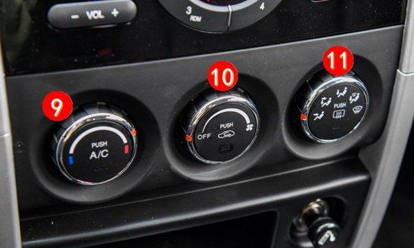 ⑨A/C开关:空调压缩机的开关,可以降低车内的温度。