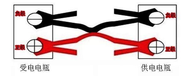 2、把电池上的红色正极线连接到另一个电池的正极接口,负极线连接负极端口。(注意操作时需要将车辆熄火。)