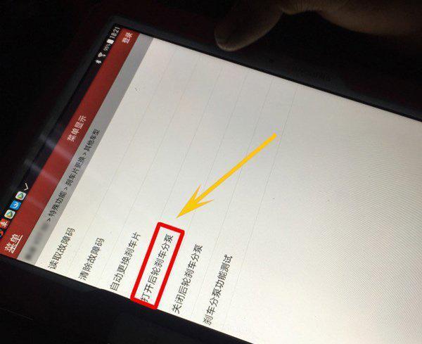 ①用通用电脑连接车辆,在刹车片更换设置界面点击【打开后轮刹车分泵】选项。大概5秒后,听到声响说明分泵脱离,制动电机缩回。