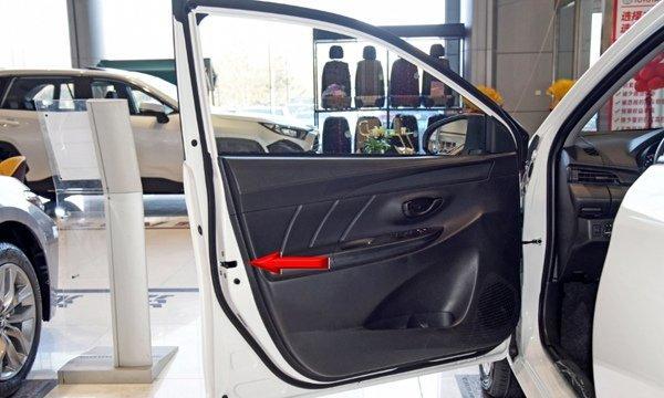 2022款威驰FS儿童锁在后排两扇车门位置,开关类型为旋钮式,驾驶员需主动行至后门操作。