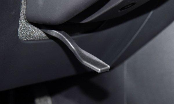 方向盘下方有个压杆开关,压杆拨动起来才能进行方向盘的调整。在方向盘移动到想要的位置时,将压杆往下压紧即可锁死方向盘。还有一种是电动式开关,在开关按钮上就能实现方向盘位置的电动调节。