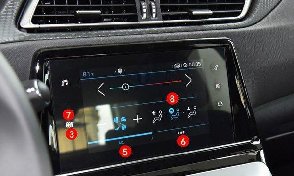 2019款标致308中控空调按钮图解(图片编号对应下文序号)