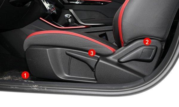 拉动座位底部的拉弓,座椅便可移动。(配备手动座椅的车型)