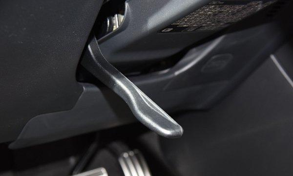 方向盘左下侧是调整开关,压杆拨动起来才能进行方向盘的调整。握住方向盘移动至想要的位置,把压杆重新按下至原位就代表锁紧当前设定。电动开关的调节更加智能,可以开关上完成上下、左右、前后的调节。