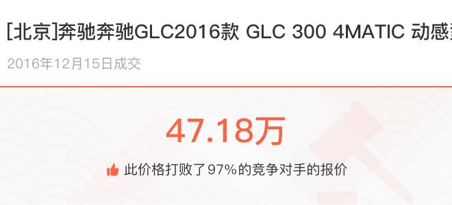 下面一起来看下开了不同公里数的奔驰奔驰GLC在二手车拍卖平台上卖了多少钱: